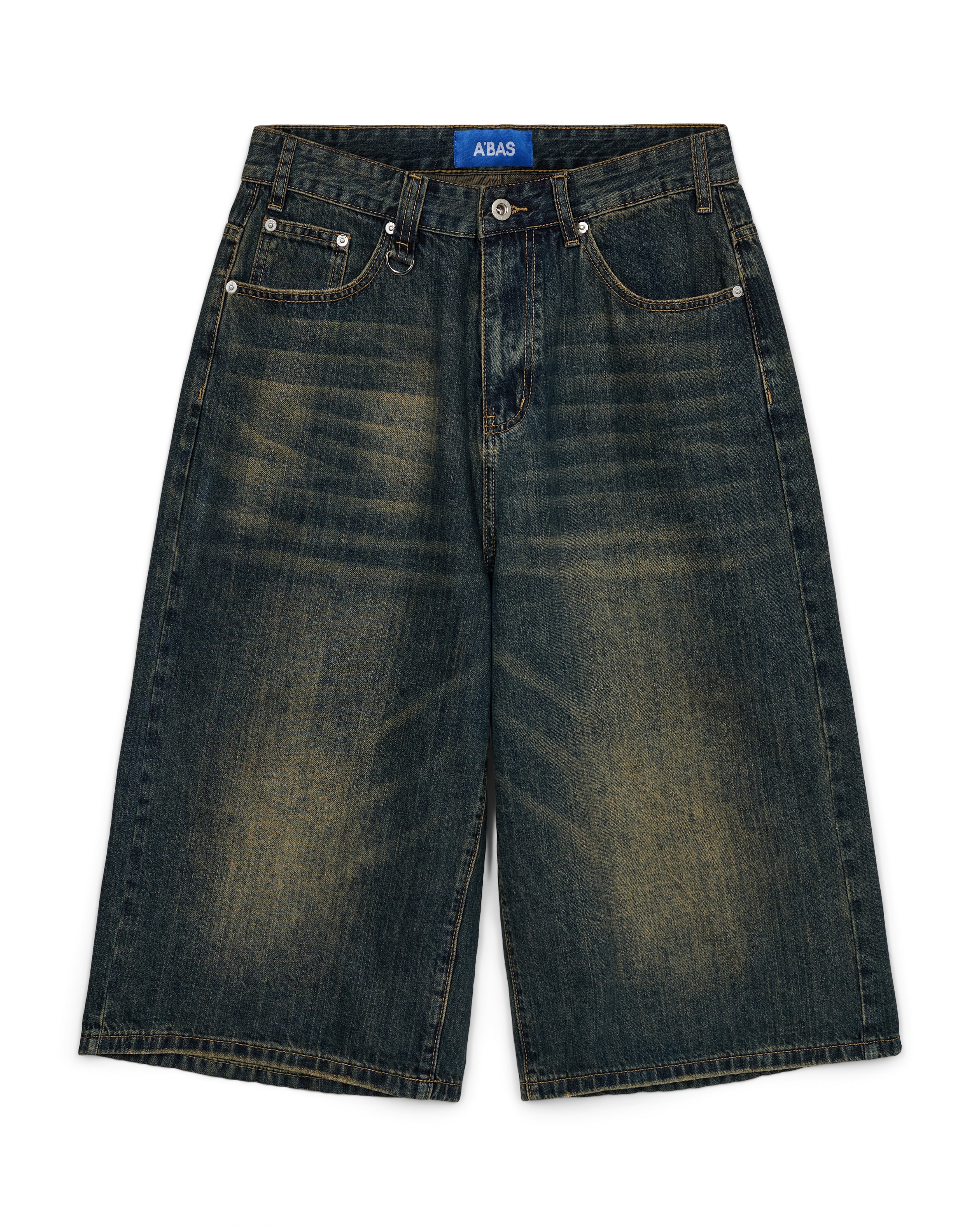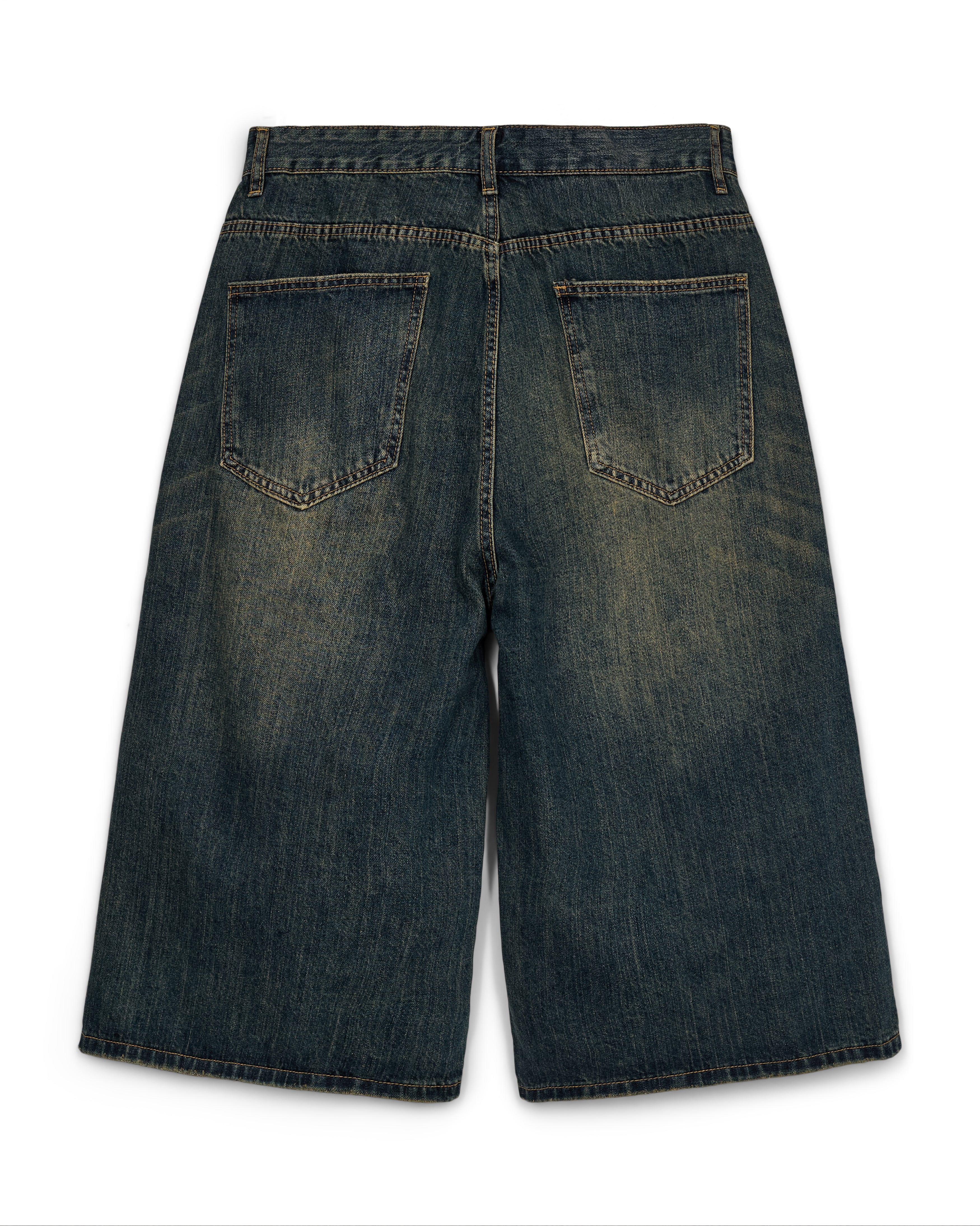 Blue acid-washed jorts with a relaxed fit. A Classic 5-pocket design with a metal ring at the waistband. Made from a heavy cotton denim blend with a soft touch, giving a casual look. Knee-length with straight legs.